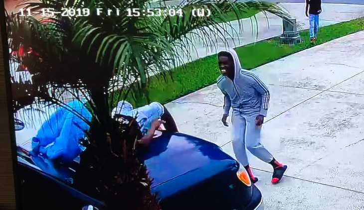For unknown reasons, the two suspects jumped on the hood of a parked, unoccupied vehicle in a driveway and caused damage to the vehicle.