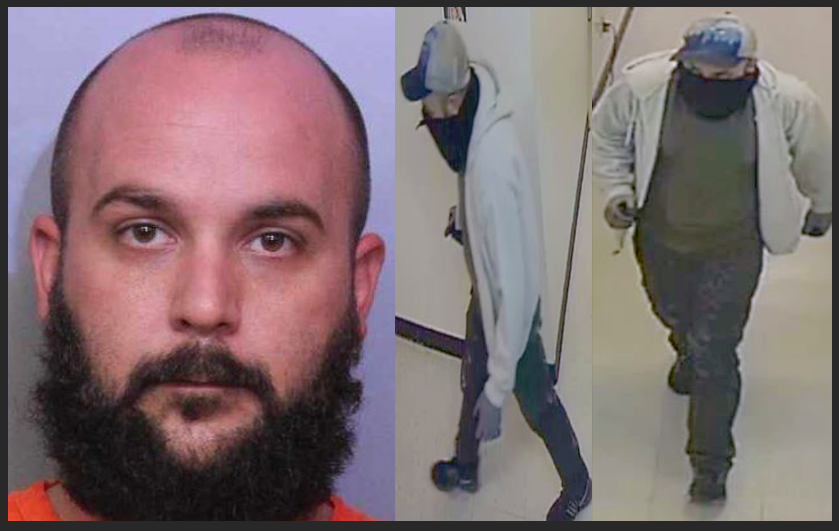 At about 5 o’clock in the morning, 32-year-old Lucas Terpenning broke into the Coin Laundry and the adjacent Walk-In Clinic. He went from one to the other by busting through the wall that separates them. His two warrants are for the two burglaries.